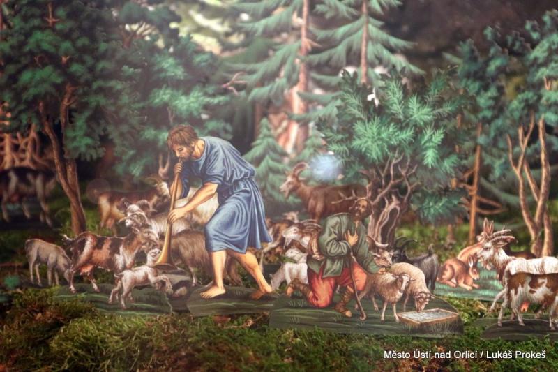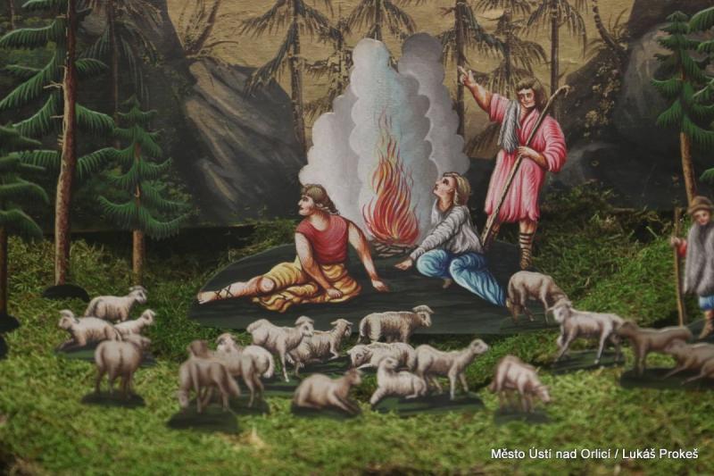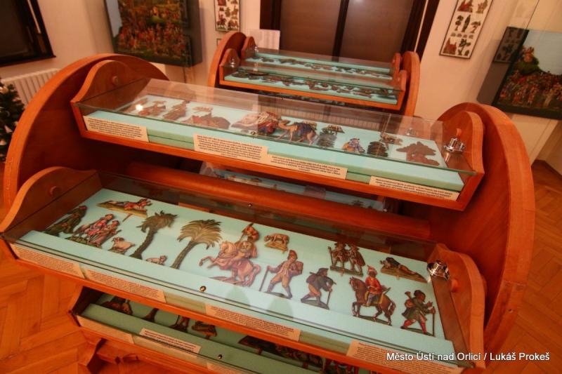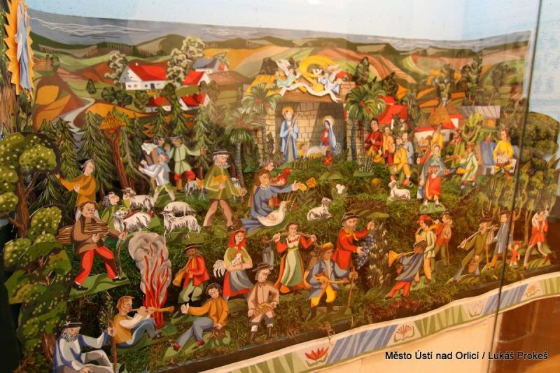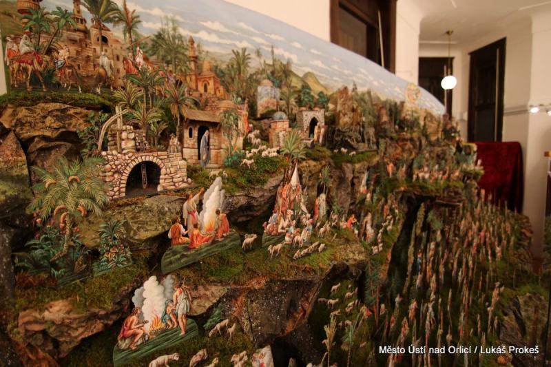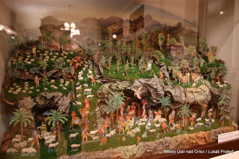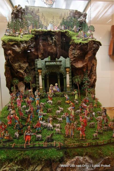 Oustecké a Třebíčské betlémy jsou konfrontovány hned ve dvou sousedících výstavních prostorách, aby vynikla jejich příbuznost i jednotlivé odlišnosti. Čtyři impozantní celky, každý na 4-5 metrech, představují krajinu předmětných oblastí, do které byly zasazeny biblické výjevy. Všechny, včetně těch menších, které je doplňují, vzbuzují úžas nad umem prostých řemeslníků, kteří nám svá díla zanechali. Ústecká expozice pokračuje i v 2.NP.