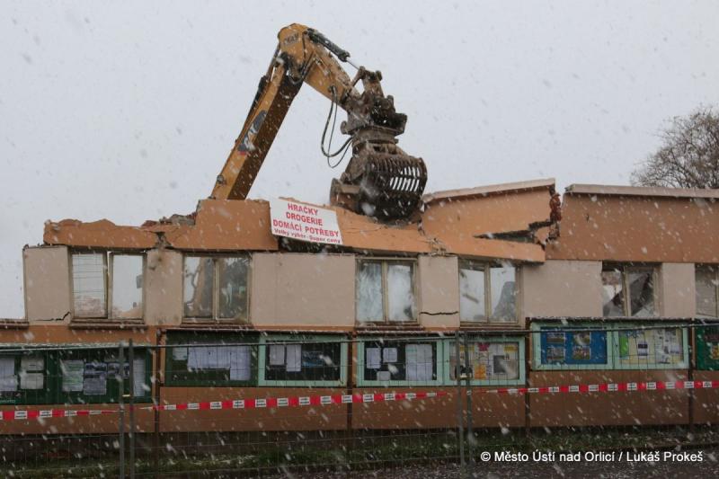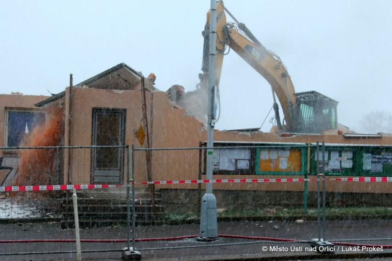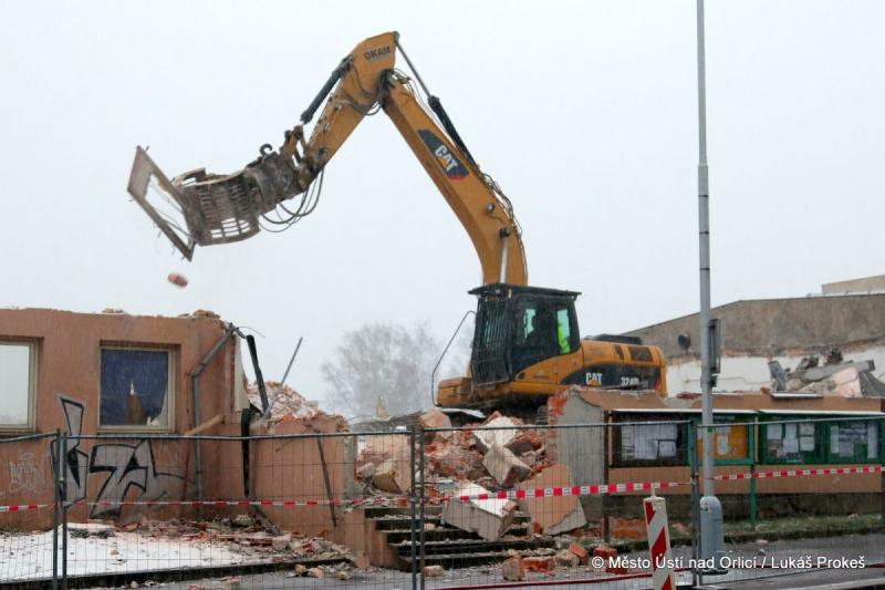 V neděli 17. prosince postoupily práce na demolici areálu PERLY 01 do ulice 17. listopadu. Tato ulice tak po desítkách let zásadně mění svou tvář. Demoliční bagry se "zakously" do posledních obvodových zdí a s chirurgickou přesností třídí a rozebírají poslední části. Následovat budou demoliční práce podlah a základů.