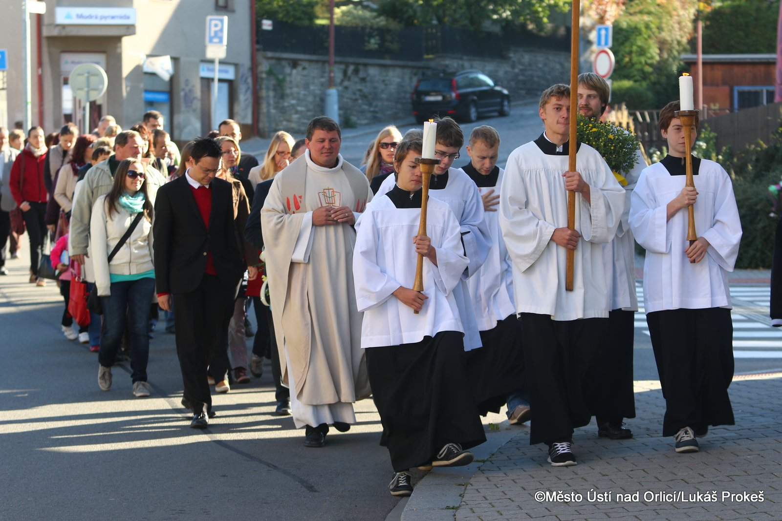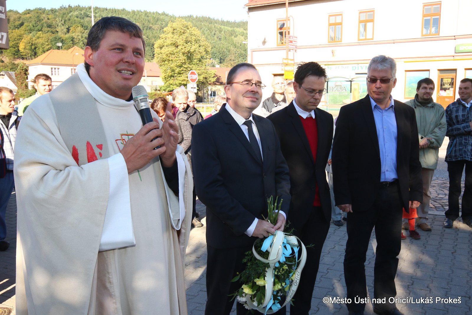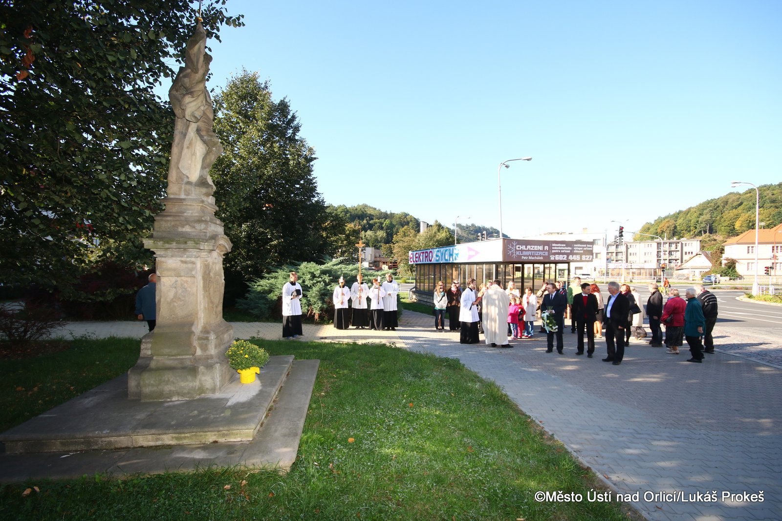 Ve sváteční pondělí 28. září jsme si připomenuli smrt knížete Václava, který byl prohlášen svatým a který je patronem českého národa a symbolem české státnosti. Kníže Václav byl zavražděn svým bratrem Boleslavem pravděpodobně roku 935. Také Ústí nad Orlicí si tohoto nejoblíbenějšího českého světce připomnělo v tento významný den. V kostele Nanebevzetí Panny Marie se ráno uskutečnila slavnostní mše svatá, kterou vedl děkan naší farnosti Vladislav Brokeš. Po slavnostní bohoslužbě následoval průvod k soše sv. Václava na Podměstí, kde zazněla krátká modlitba, česká hymna a přítomné pozdravil také starosta města Petr Hájek, který k soše položil kytici.