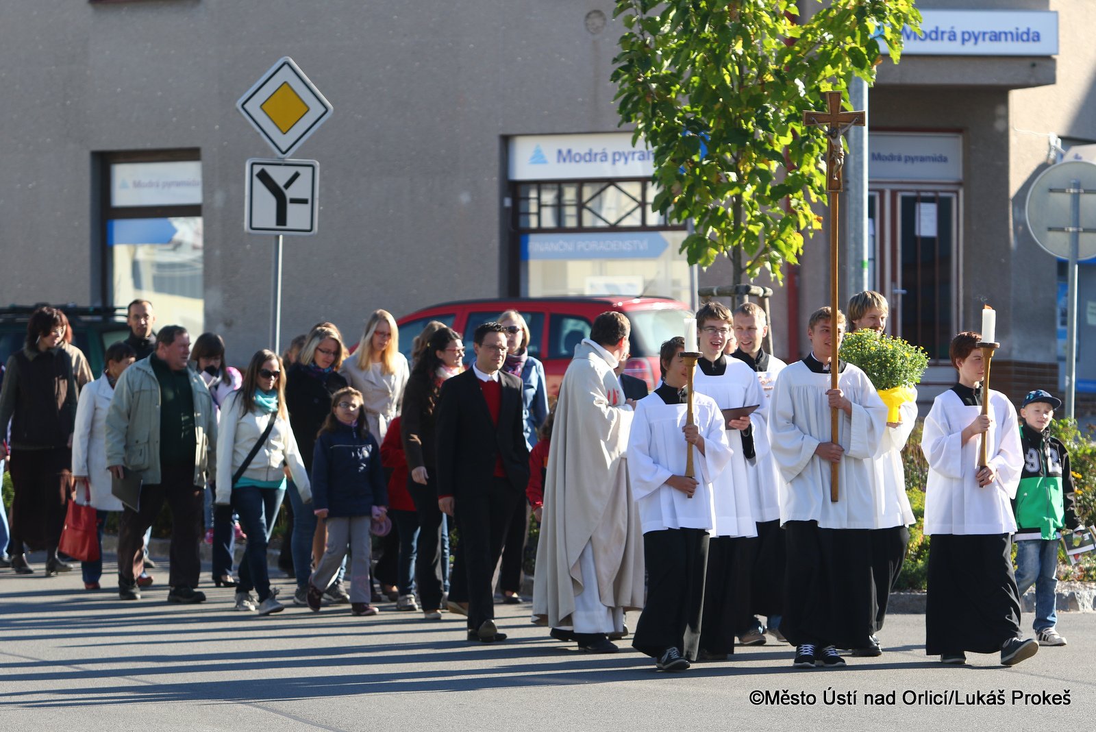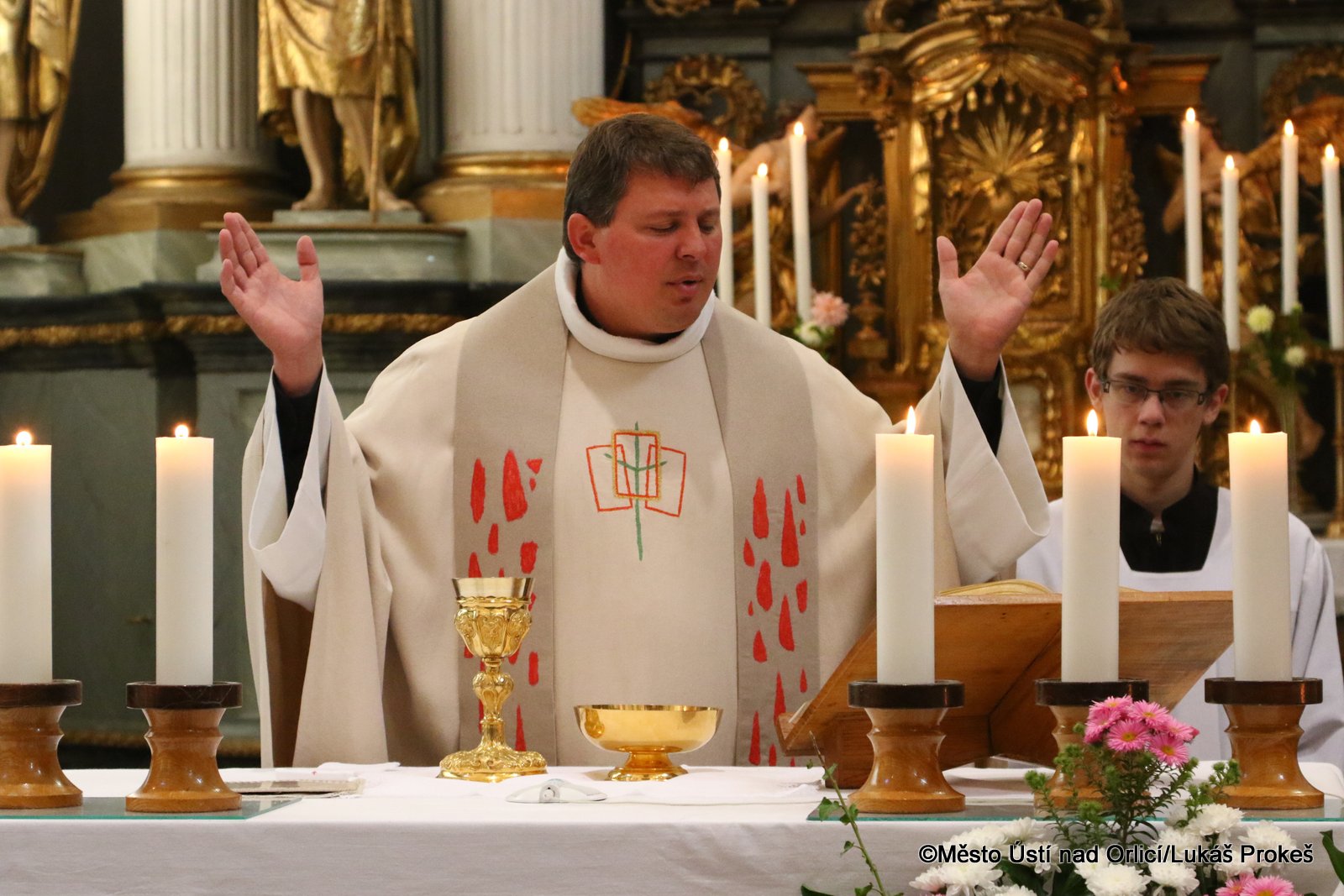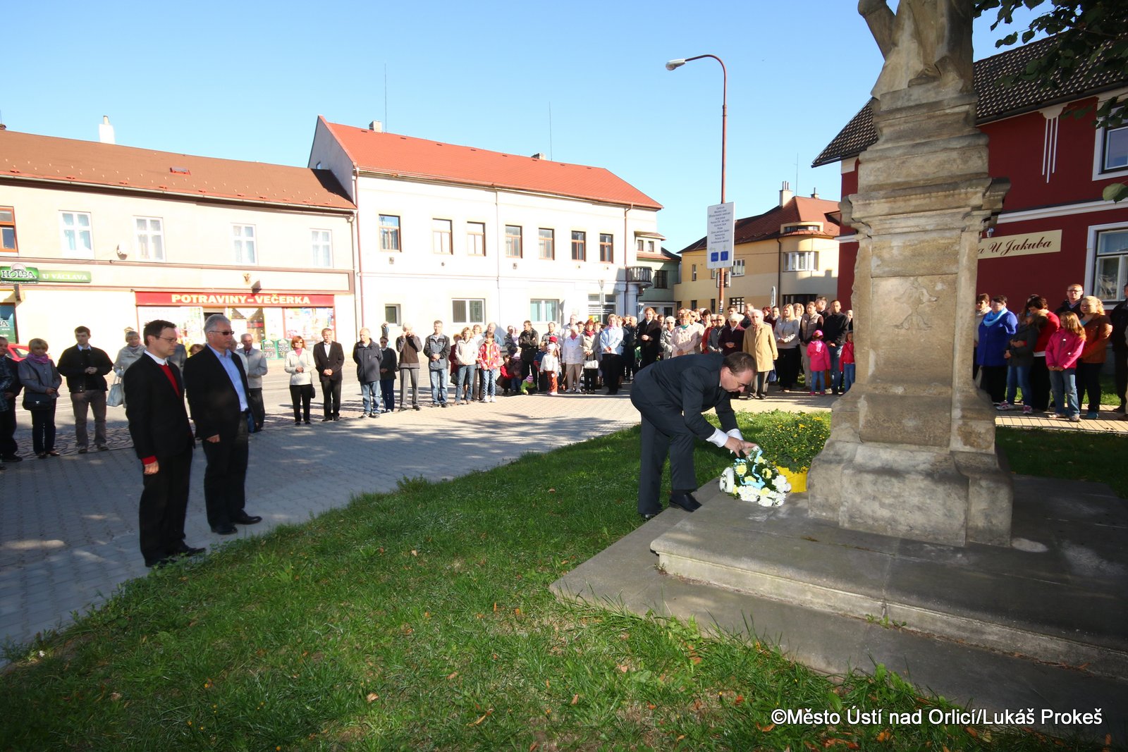 Ve sváteční pondělí 28. září jsme si připomenuli smrt knížete Václava, který byl prohlášen svatým a který je patronem českého národa a symbolem české státnosti. Kníže Václav byl zavražděn svým bratrem Boleslavem pravděpodobně roku 935. Také Ústí nad Orlicí si tohoto nejoblíbenějšího českého světce připomnělo v tento významný den. V kostele Nanebevzetí Panny Marie se ráno uskutečnila slavnostní mše svatá, kterou vedl děkan naší farnosti Vladislav Brokeš. Po slavnostní bohoslužbě následoval průvod k soše sv. Václava na Podměstí, kde zazněla krátká modlitba, česká hymna a přítomné pozdravil také starosta města Petr Hájek, který k soše položil kytici.
