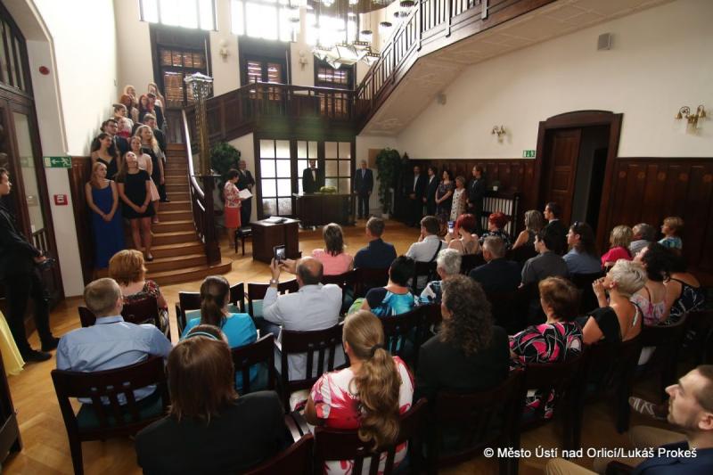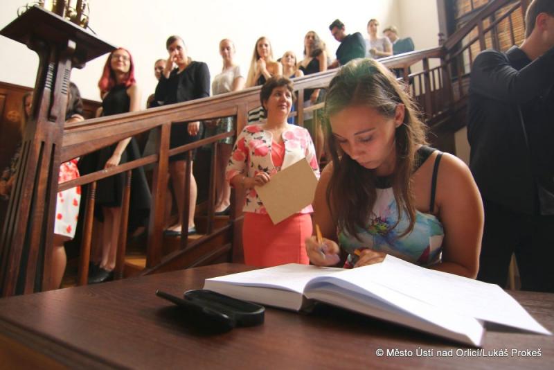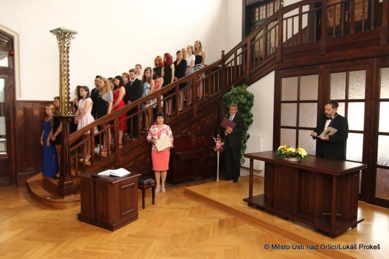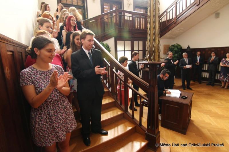 Druhý červnový pátek bylo zakončeno slavnostní předávání maturitních vysvědčení studentům středních škol v Ústí nad Orlicí. Mezi poslední letošní přebírající se zařadili studenti Střední školy uměleckoprůmyslové a Střední školy automobilní v Ústí nad Orlicí. Kromě pedagogů a zástupců školy předával vysvědčení také zastupitel našeho města Zdeněk Velebný. Úspěšní studenti se také podepsali do pamětní knihy.