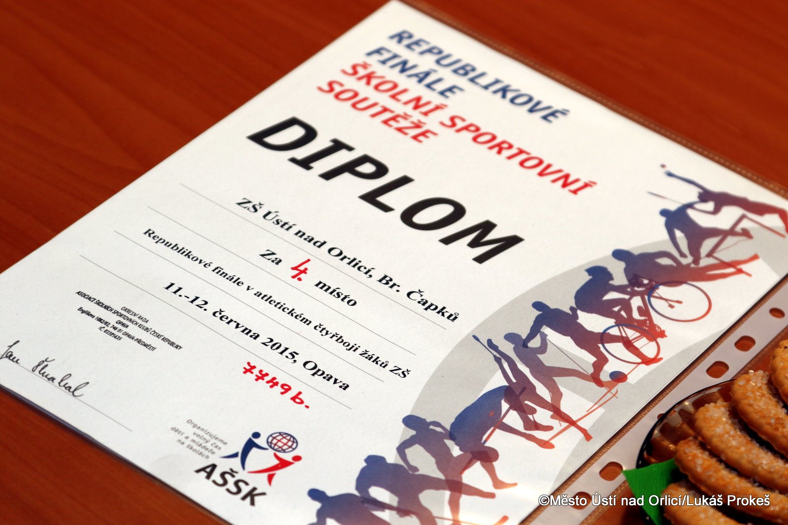 V úterý 23. června se na ústecké radnici konalo několik setkání a oceňování žáků ústeckých škol. Nejprve se starosta města Petr Hájek setkal s pěticí žákyň Základní školy Bratří Čapků, které se mezi 15 družstvy v republikovém finále atletického čtyřboje v Opavě, umístily na krásném 4. místě (1. místě nesportovních ZŠ). Všechny žákyně si v tomto finále vytvořily svoje osobní rekordy. Družstvo ZŠ Bratří Čapků bylo ve složení Skalická Iva, Vaňousová Kamila, Hrdinová Kateřina, Pirklová Marta a Beranová Nela.