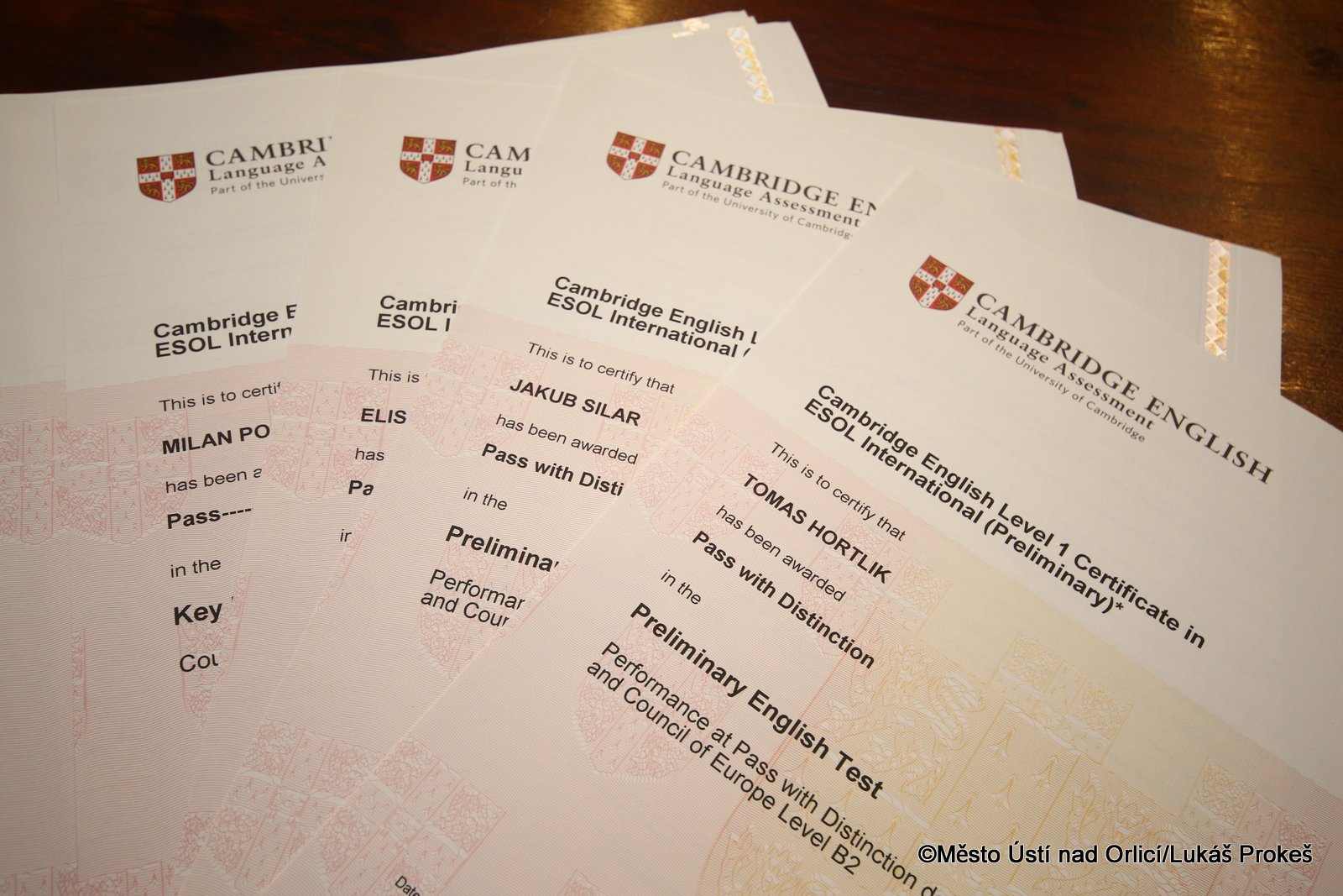 Další významnou událostí bylo předávání certifikátů Mezinárodních zkoušek Cambridge English žákům škol v Ústí nad Orlicí. Cambridge zkoušky byly v Ústí nad Orlicí skládány vůbec poprvé. 1. Jazyková škola ÚO ve spolupráci se ZŠ Komenského a ZŠ Bratří Čapků se zapojili do projektu jehož garantem je Evropské centrum jazykových zkoušek (ELEC). Jedná se o nejprestižnější mezinárodní zkoušky z angličtiny pro nerodilé mluvčí.