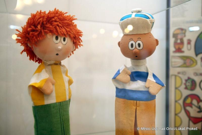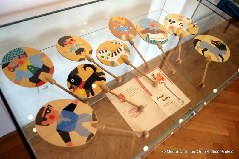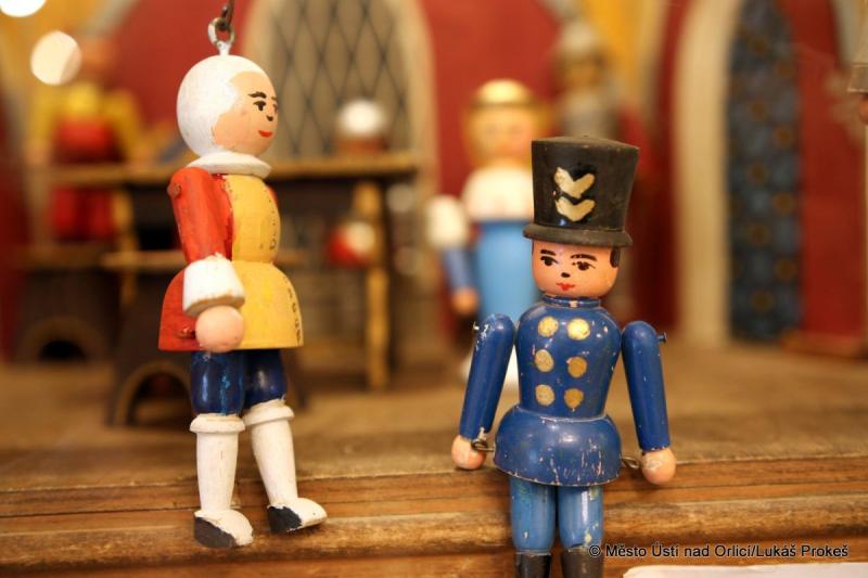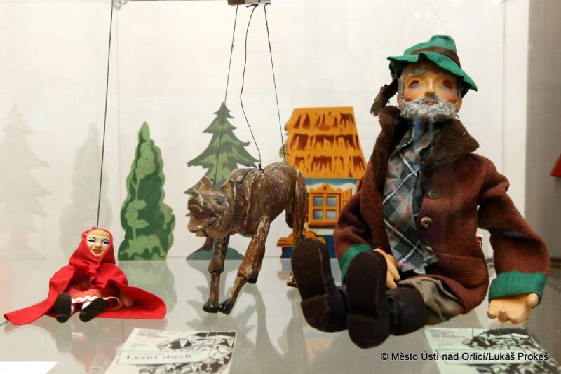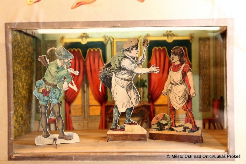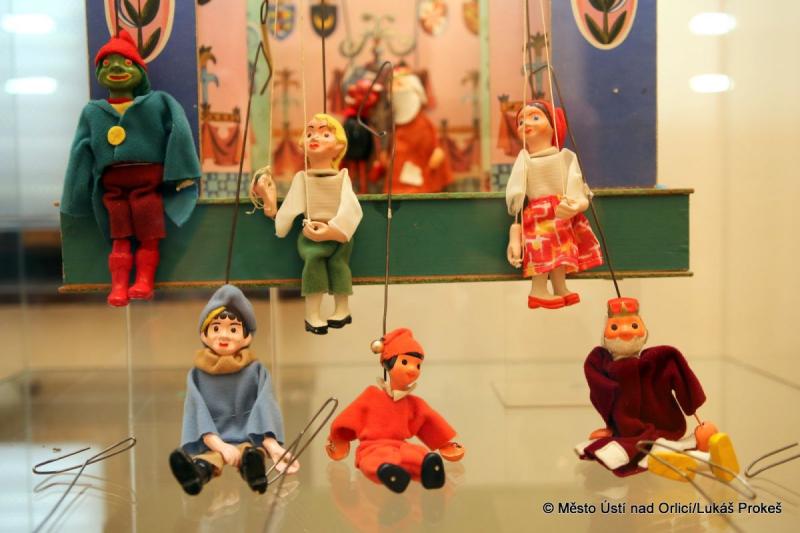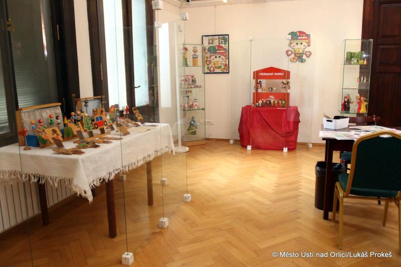 Většinu exponátů dodalo Muzeum hraček – Rychnov nad Kněžnou. Bohatě je na výstavě zastoupen fenomén tzv. rodinných loutkových divadel. Nejvíce těchto stolních divadel pochází z 1. poloviny 20. století, ale k vidění jsou i kousky z konce 19. století.