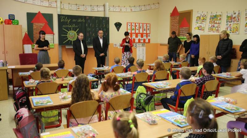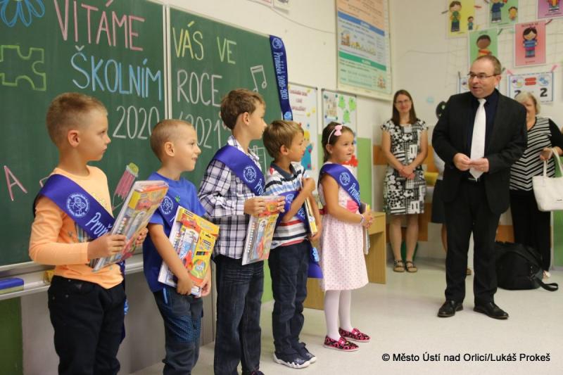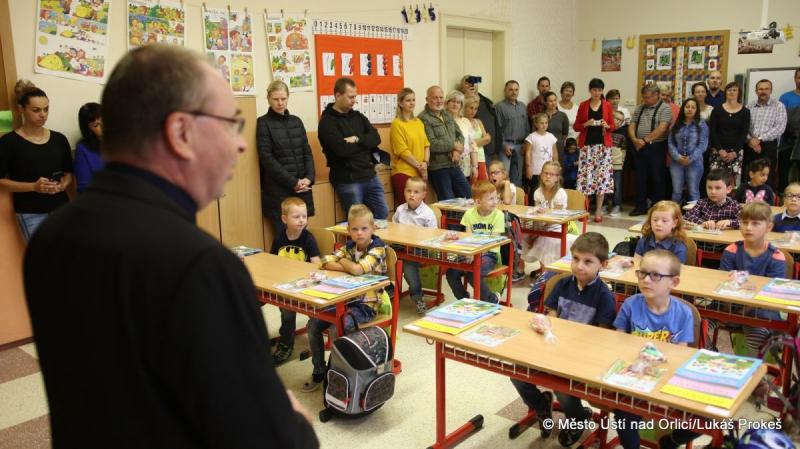 V úterý 1. září usedlo do lavic základních škol v Ústí nad Orlicí celkem 131 prvňáků. Stejně jako každý rok se také letos vydal prvňáčky, doprovázené rodiči, pozdravit starosta města Petr Hájek a místostarosta Matouš Pořický.