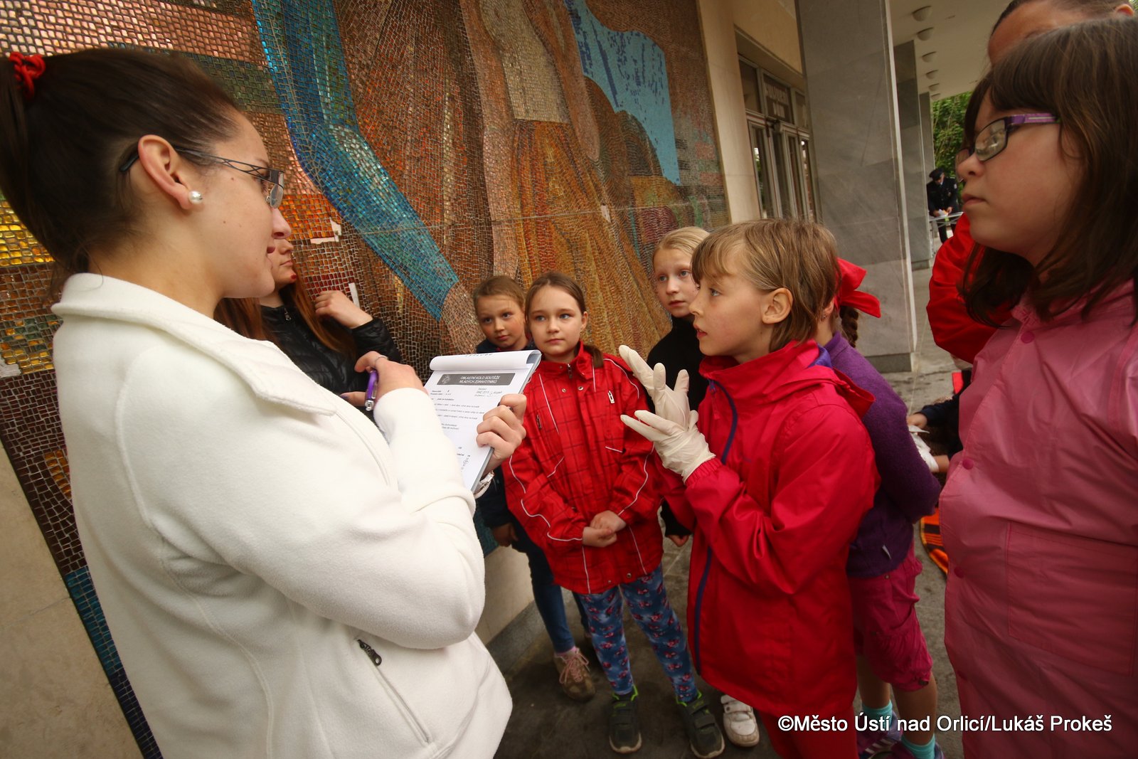 Pro děti bylo připraveno několik soutěžních stanovišť s první pomocí, kde musely prokázat své znalosti při ošetření různých poranění. Ošetřovaly např. odřeniny, cizí těleso v ráně, zástavu dechu a další. Dále musely prokázat znalosti z obvazové techniky, dopravy postižených nebo znalosti z dopravní výchovy.