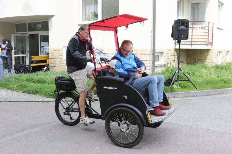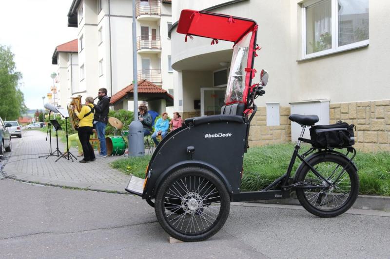Během odpoledne byl představen seniorům dobrovolnický projekt #babiJede orlickoústeckého sdružení Spousti. Z výtěžku posledního festivalu Jeden svět koupilo rikšu, která vyveze seniory na výlet. Iniciativa vznikla pod názvem Cycling without age v Dánsku a připojila se k ní již i některá česká města. Také v Ústí nad Orlicí dojde k užitečnému propojení mladší generace se starší. Dobrovolníci za pomoci speciálního elektrokola vyvezou babičky a dědečky z Ústí nad Orlicí na cyklovyjížďku. Na tuto aktivitu, která přináší blahodárný pobyt na čerstvém vzduchu, už jim většinou síly nestačí. Podle předsedy sdružení Petra Kulhavého bude rikša sloužit především Centru sociální péče na sídlišti Štěpnice. „Pokud bude zájem, nevylučujeme, že by si ji mohla půjčovat i veřejnost,“ dodává Petr Kulhavý. Rikša má tři kola a pohodlné sedátko s nožní podpěrou, před sluncem seniory chrání stříška. Dopravní prostředek je vybaven také technikou pro přehrávání hudby. Dvě baterie zaručí, že se dvojice senior – dobrovolník může vydat i na delší trasu po cyklostezkách.
