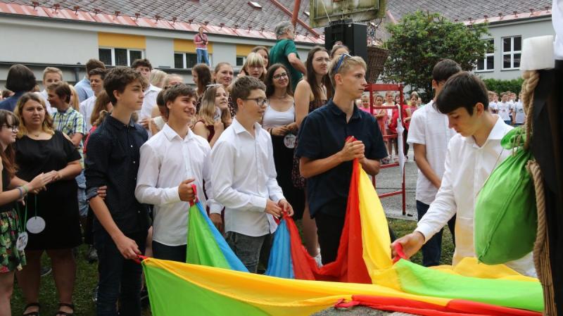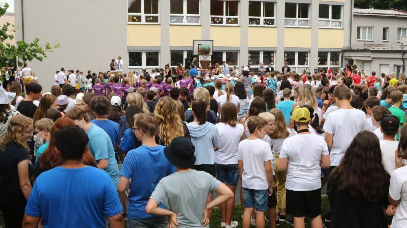 Na poslední červnové úterý připravila Základní škola Komenského slavnostní zakončení školního roku. Kromě slavnostního šerpování končících deváťáků a pasování prvňáků nacvičila celá škola hromadné provedení "Jerusalemy", což je celosvětová taneční výzva, která vyjadřuje dík všem, kteří bojují proti Covid-19.