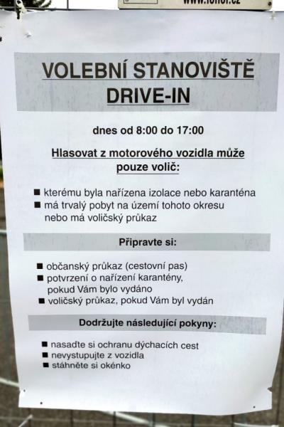 Vzhledem k aktivaci zvláštních způsobů hlasování v souvislosti s onemocněním covid-19, dle zákona č. č. 296/2021 Sb., o zvláštních způsobech hlasování ve volbách do Poslanecké sněmovny Parlamentu České republiky v roce 2021 a o změně některých zákonů, dne 06.10.2021 od 08:00 do 17:00 hod. probíhá hlasování z motorového vozidla (drive-in), které je připraveno pro voliče v karanténě či izolaci. Volební stanoviště v okrese Ústí nad Orlicí je umístěno na parkovišti u Aquaparku, ul. V Lukách, Ústí nad Orlicí, souřadnice GPS 49.9808275N, 16.3920622E.
