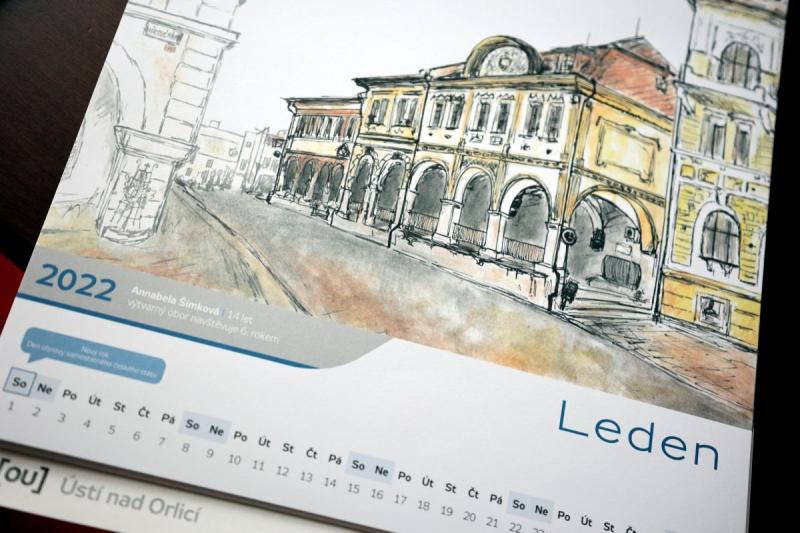 Přemýšlíte, jaký originální vánoční dárek věnovat svým blízkým a nic vás nenapadá? Doporučujeme kouzelný kalendář Města Ústí nad Orlicí na rok 2022, který tvoří kolekce kreseb zajímavých ústeckých zákoutí vytvořená mladými výtvarníky. Kalendář město vydává každý rok, tentokrát oslovilo výtvarný obor Základní umělecké školy Jaroslava Kociana, který vede MgA. Veronika Pekárková. Obrázky vznikaly v září 2021, na počátku školního roku, kdy obvykle žáci výtvarného oboru vyráží malovat a kreslit do plenéru. Jejich očima vidíme známé či méně známé stavby, sochy či veřejná prostranství, například ústeckou radnici, nový Dům dětí a mládeže Duha, aquapark nebo Roškotovo divadlo. Větší část prací je vytvořena sprašnými křídami, tři dílka jsou provedena v perokresbě nebo pastelkami. Originály prací bude možné zhlédnout na výstavě výtvarného oboru, která se chystá na březen a duben 2022 do Městské knihovny v Ústí nad Orlicí.