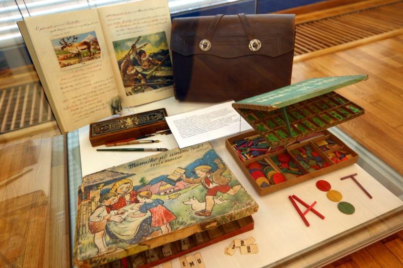 Tentokrát se mohou návštěvníci těšit na historické školní pomůcky nebo zavzpomínat na ilustrace, které bývaly umístěny ve školních třídách. Představena je tvorba Zdeňka Buriana, Aleny Ladové či Františka Hrubína. Nechybí informace o historii církevního školství od středověku do 19. století, dále školství za první republiky a Protektorátu, až do roku 1989.
