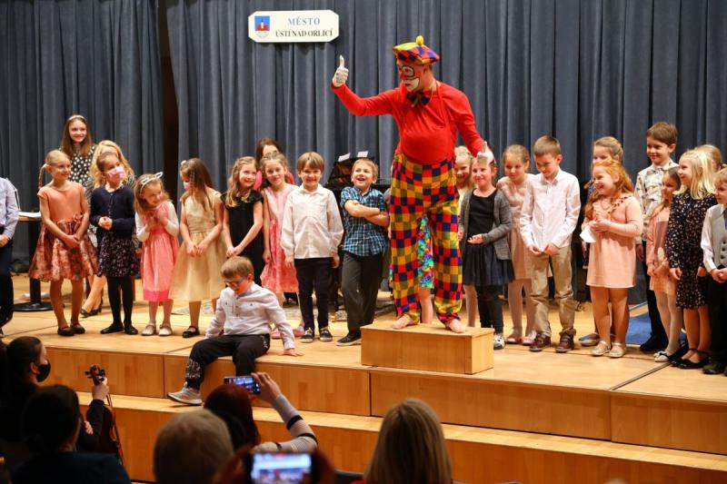 Po dlouhé přestávce se v únoru naplno rozjely koncerty žáků Základní umělecké školy Jaroslava Kociana v Ústí nad Orlicí. Kromě tradičních besídek žáků jednotlivých hudebních oborů se v pondělí 21. února konal velký koncert nejmenších muzikantů naší zušky. Na pódiu v koncertním sále školy se se představily dvě desítky malých hudebníků. Zazněly tóny kytary, houslí, klavíru, flétny nebo bicích a nechyběl ani zpěv. Se svým zábavným vystoupením se předvedl také maskot školy Šáša v podání Jiřího Zajíčka, učitele literárně dramatického oboru školy.