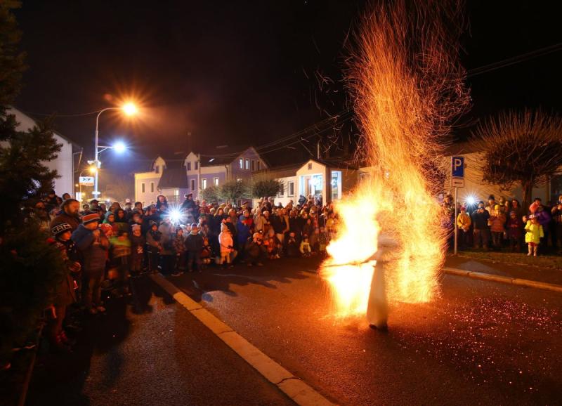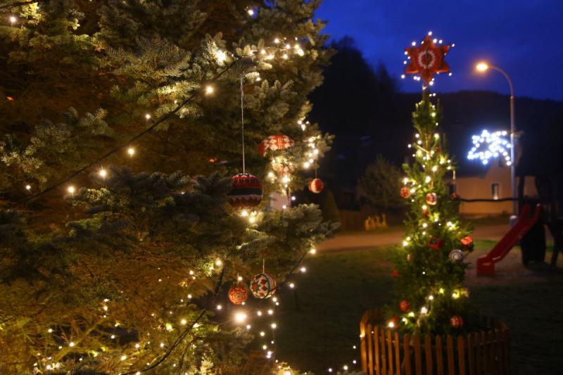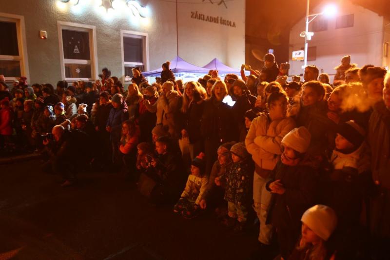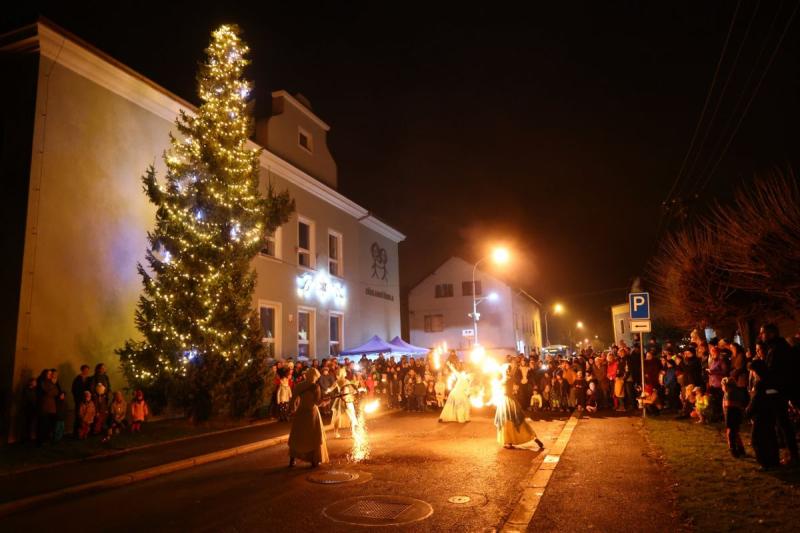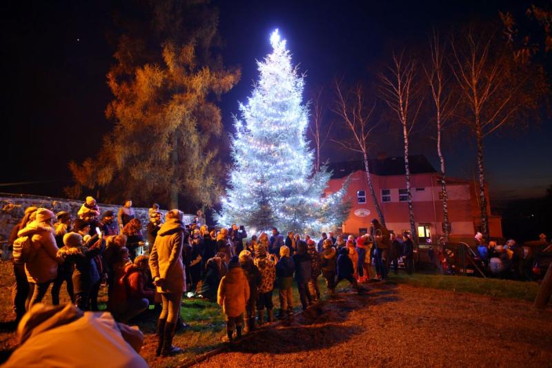 Svého vánočního stromu se v pátek dočkali také v Kerharticích, kde při jeho rozsvěcení zazpívala místní škola a program doplnila efektní ohňová show.