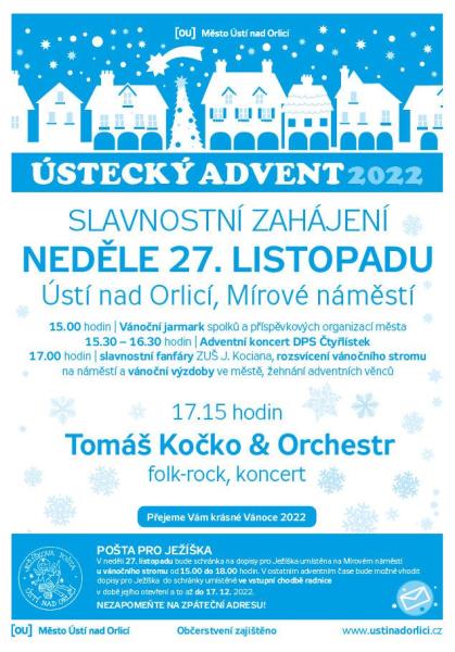 Na Mírovém náměstí proběhne zahájení adventu a slavnostní rozsvícení vánočního stromu a výzdoby ve městě v neděli 27.11.. V 15 hodin začne vánoční jarmark spolků a příspěvkových organizací města doprovázený adventním koncertem DPS Čtyřlístek. V 17 hodin bude rozsvícen vánoční strom a vystoupí Tomáš Kočko & Orchestr.