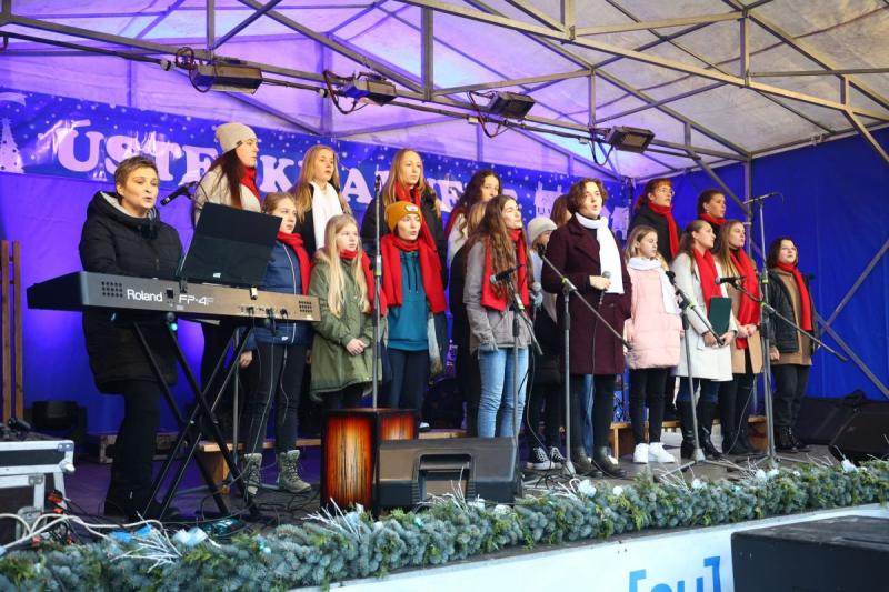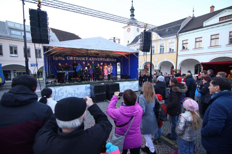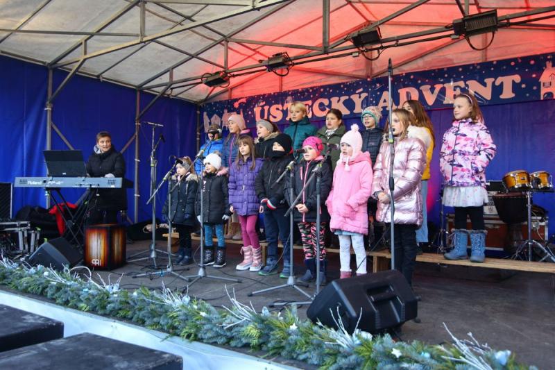 První adventní neděli 27. listopadu jsme na Mírovém náměstí v Ústí nad Orlicí společně zahájili tradiční Ústecký advent. Náměstí zaplnily jarmareční stánky, ve kterých neziskové organizace z našeho města prodávaly své výrobky. Návštěvníci si zde mohli vybrat z pestré nabídky s vánoční tématikou. Na pódiu v průběhu odpoledne vystoupil dětský pěvecký soubor Čtyřlístek.