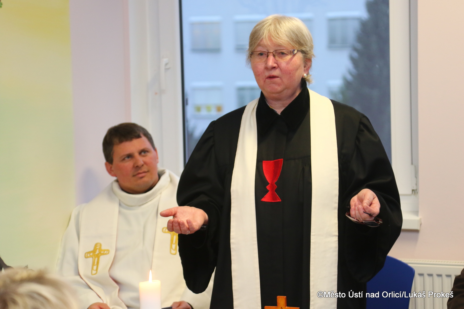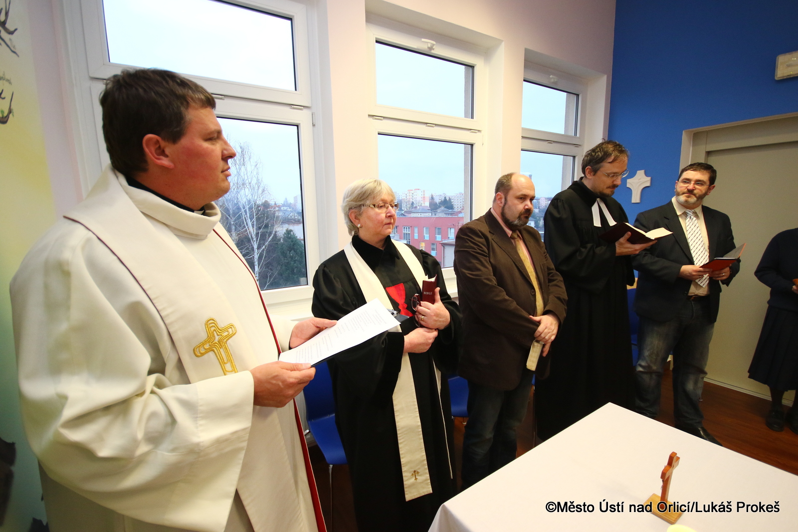 Bohoslužby se zúčastnili za Římskokatolickou církev P. Th. Bc. Vladislav Brokeš, za Církev československou husitskou Mgr. Lidmila Kukuczková, za Církev Bratrskou Ing. Tomáš Pospíchal, za Českobratrskou církev evangelickou Mgr. Jiří Kvapil a za Jednotu bratrskou Bc. Daniel Dostrašil. Současně pan farář Brokeš novému prostoru pro duchovní péči požehnal.
