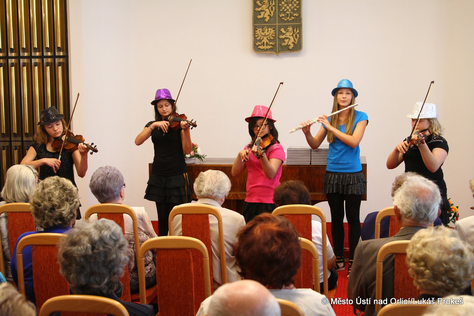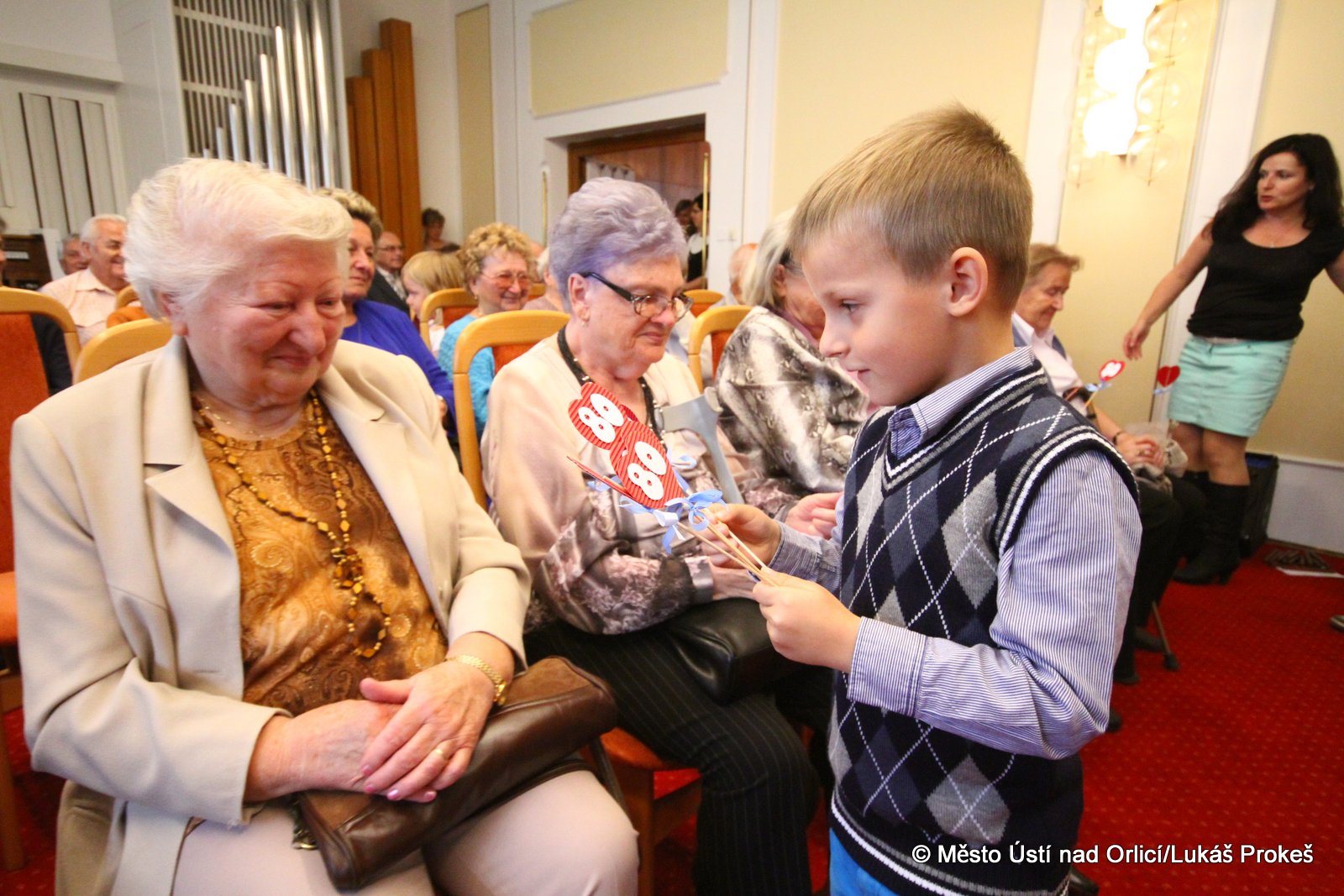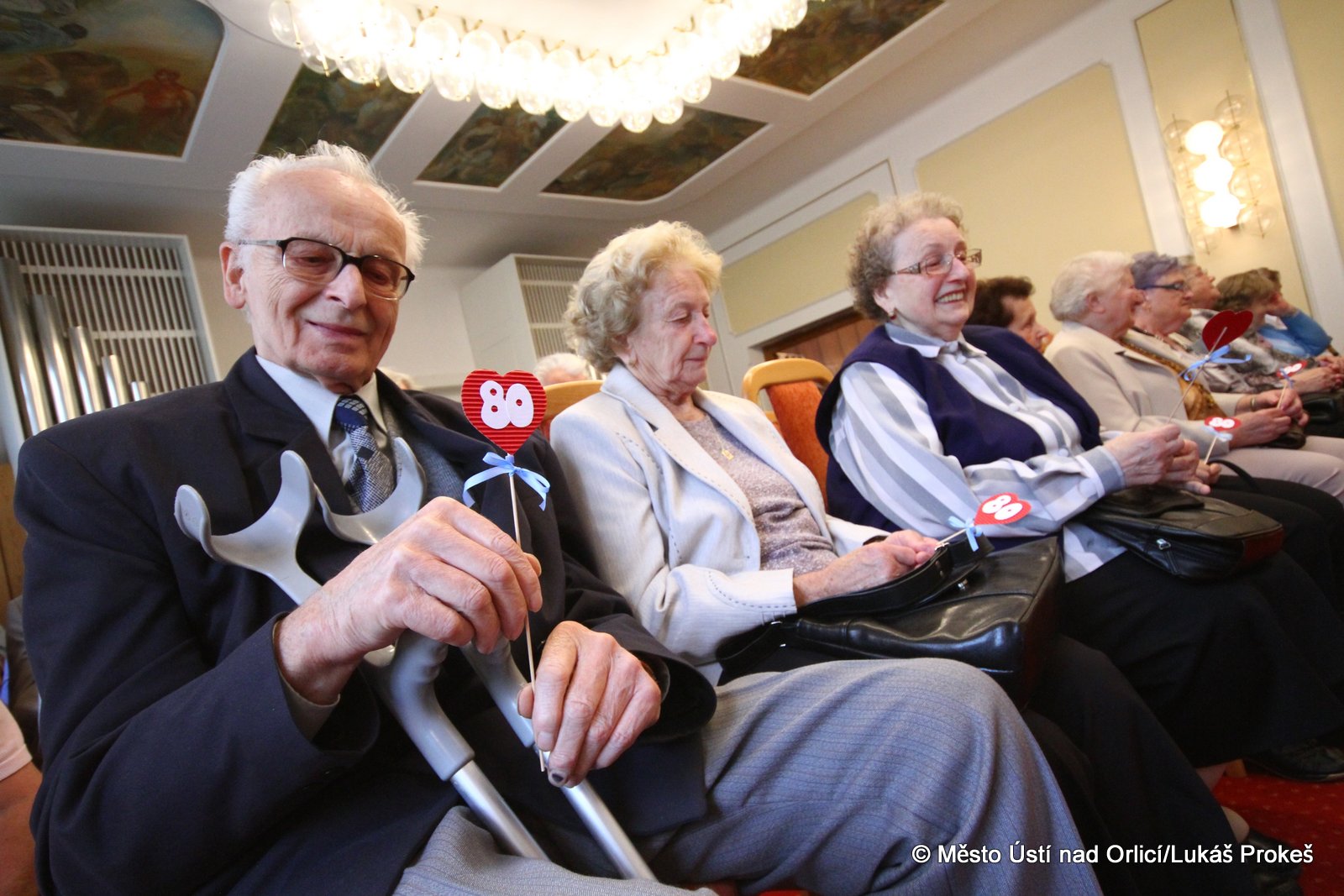 V úterý 23. září v odpoledních hodinách se již tradičně uskutečnilo setkání obyvatel města Ústí nad Orlicí, kteří v letošním roce dovršili 80 let věku. Slavnostní přijetí starostou města Petrem Hájkem proběhlo v obřadní síni naší radnice. V letošním roce bylo pozváno celkem 91 oslavenců, zúčasnilo se jich 48, ostatní se omluvili ze zdravotních nebo jiných důvodů. Program byl obohacen vystoupením dětí z Mateřské školy Heranova v Ústí nad Orlicí a žáků Základní umělecké školy v Ústí nad Orlicí.